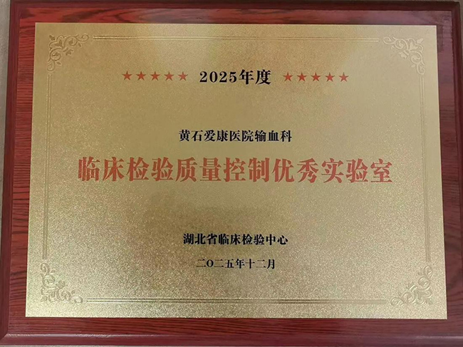 近日,湖北省临床检验中心发布了《关于2025年度临床检验质量控制优秀实验室、质量管理优秀单位和质量控制先进个人的通报》,黄石爱康医院输血科实验室荣获“2025年度临床检验质量控制优秀实验室”称号。湖北省仅有20家输血科实验室获得此荣誉,能获得此殊荣充分体现了我院输血科在综合技术实力与管理水平上得到了省临检中心的高度肯定,更是对守护临床用血安全、践行生命至上的有力证明。